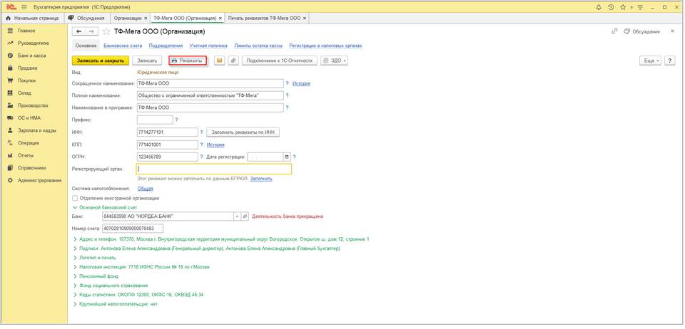 - Убедитесь в правильности кодов ОКПО и ОКТМО